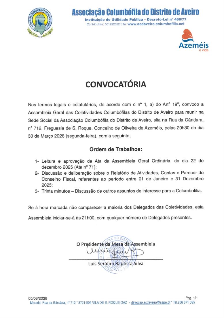 | CONVOCATÓRIA ASSEMBLEIA GERAL ORDINÁRIA - 30/03/2026 - RELATÓRIO ATIVIDADES E CONTAS ANO 2025 | 06/03/2026 | |