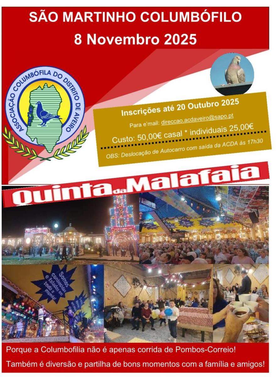 SÃO MARTINHO COLUMBÓFILO NA QUINTA DA MALAFAIA - 8 NOV. 2025 * INSCRIÇÕES ATÉ 20 OUT.2025 24/09/2025