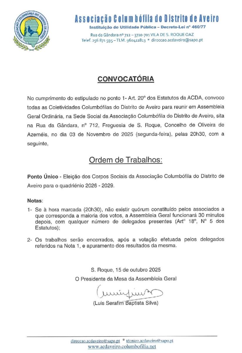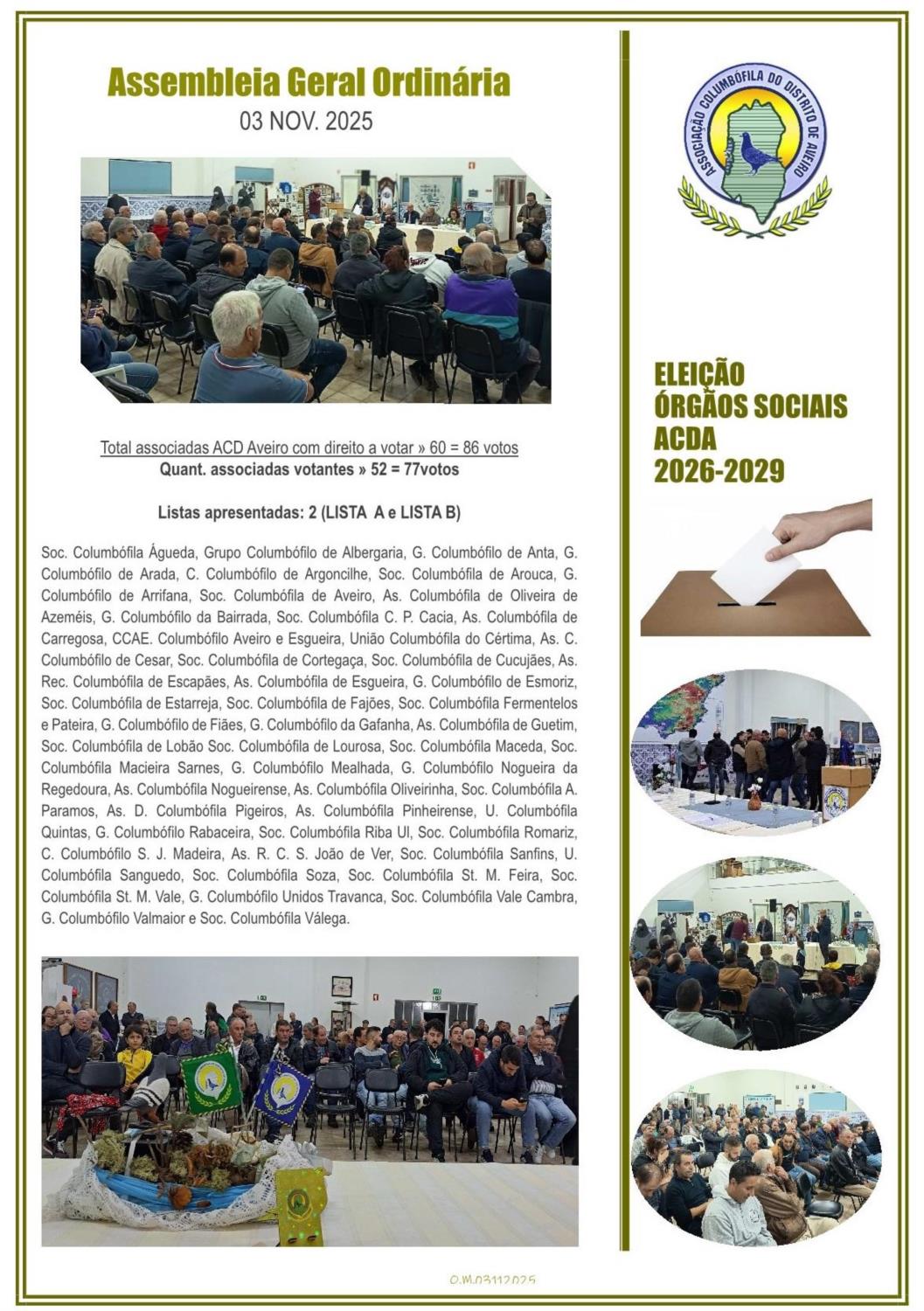 CONVOCATÓRIA - ASSEMBLEIA GERAL ORDINÁRIA 03-11-2025 - ELEIÇÃO CORPOS SOCIAIS ACDA 2026-2029 15/10/2025