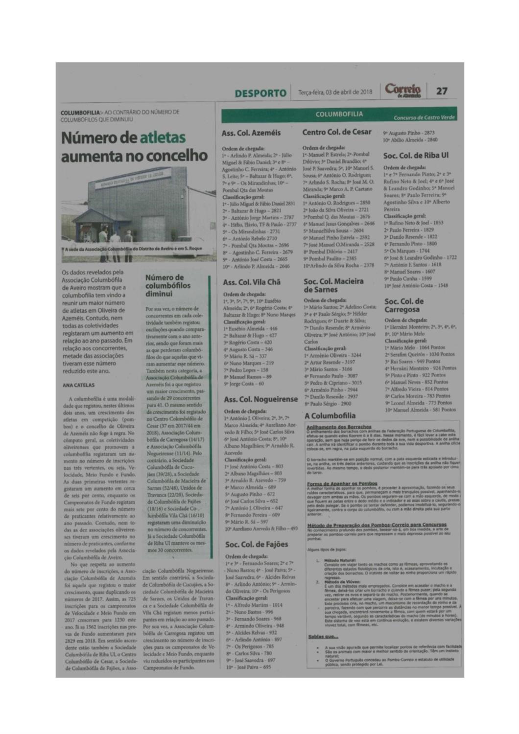 Publicação no CORREIO AZEMÉIS - Secção DESPORTO 05/04/2018