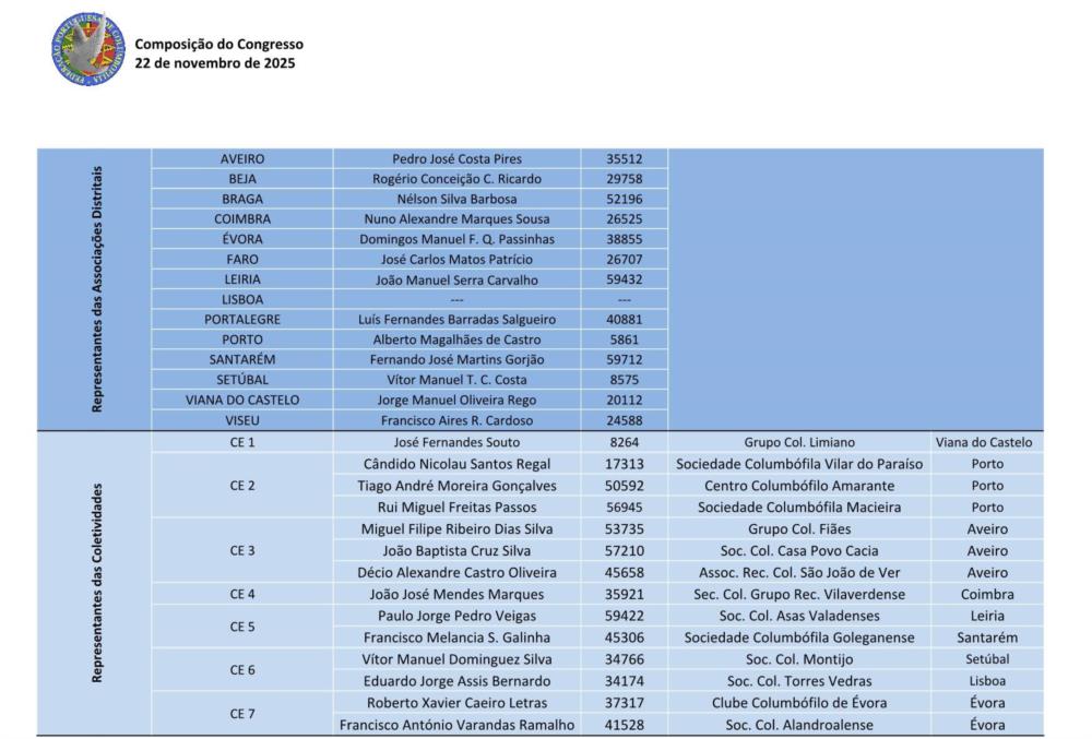 A Federação Portuguesa de Columbofilia disponibiliza a informação relativa aos resultados do processo eleitoral dos delegados ao Congresso para o mandato 2026-2029 e agradece a colaboração de todos os envolvidos.