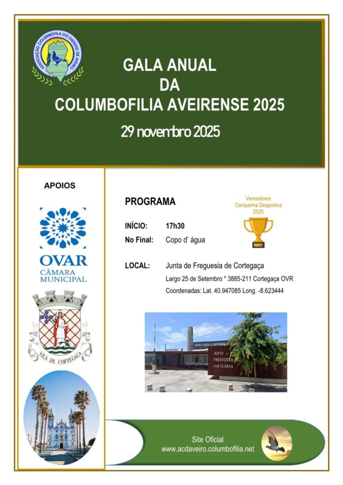 RECORDATÓRIA GALA ANUAL DA COLUMBOFILIA AVEIRENSE - AMANHÃ, SÁBADO, 29 NOV. 2025 28/11/2025