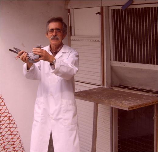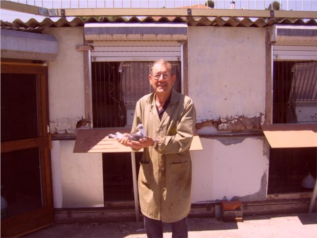 Manuel Morais com a sua pomba: Campeã no Campeonato de Fundo Primeiro prémio no concurso de Alcoy