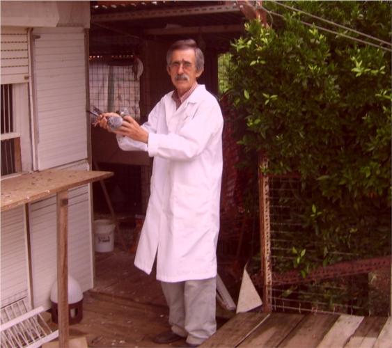 José Joaquim com a sua pomba: Campeã do Campeonato de Meio Fundo Primeiro prémio no concurso de S. Marcos da Serra II Primeiro prémio no concurso de Évora