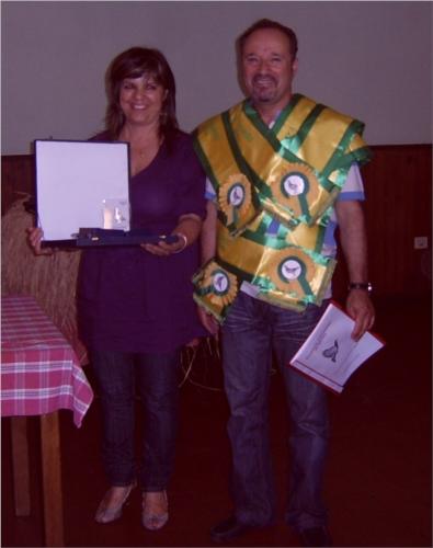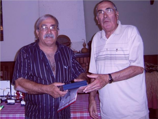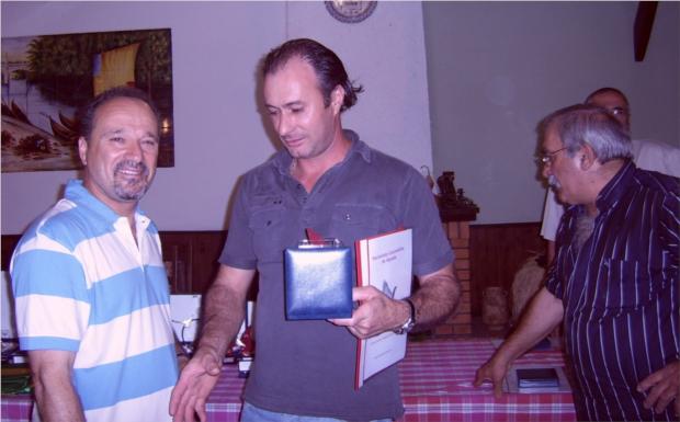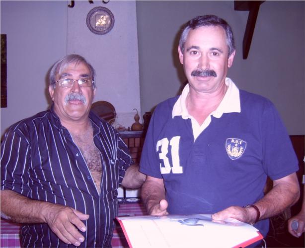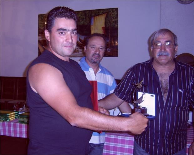 O sócio Martinho recebendo o seu prémio da campanha 2009. Faixa de 3º classificado no Campeonato Geral. Faixa de 3º classificado no Campeonato de Fundo
