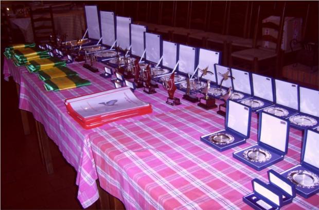 O sócio Carlos Glória e esposa recebendo o seu prémio da Campanha desportiva 2009. Faixa de Campeão Geral Absoluto Faixa de Campeão do Campeonato de Fundo Faixa de Campeão do Campeonato de Meio Fundo Faixa de 3º Classificado do Campeonato de Velocidade