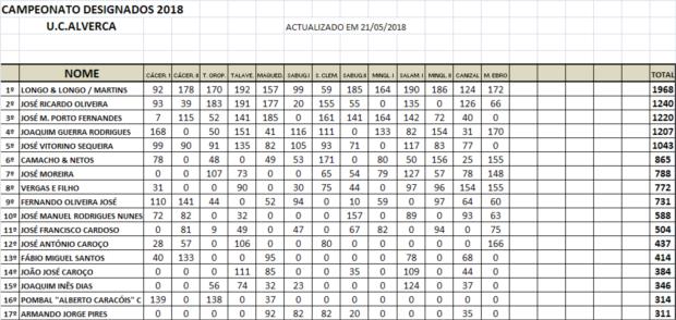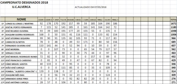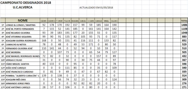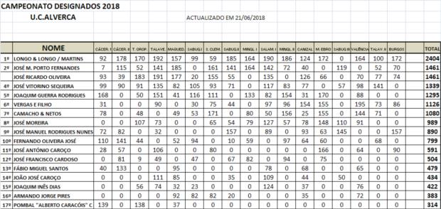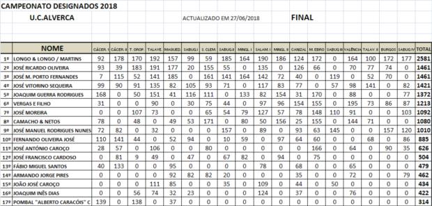 | CAMPEONATO DE DESIGNADOS - UCA 2018 - APÓS SABUGAL IV - CLASSIFICAÇÃO FINAL | 29/06/2018 |