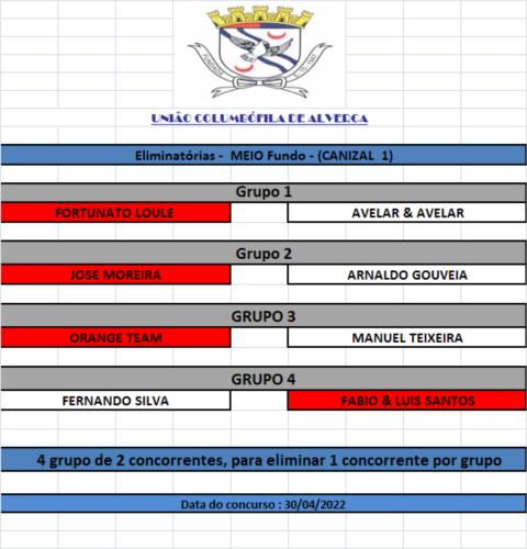 RESULTADOS DA ELEMINATORIA DE MEIO FUNDO PROVA DE CANIZAL