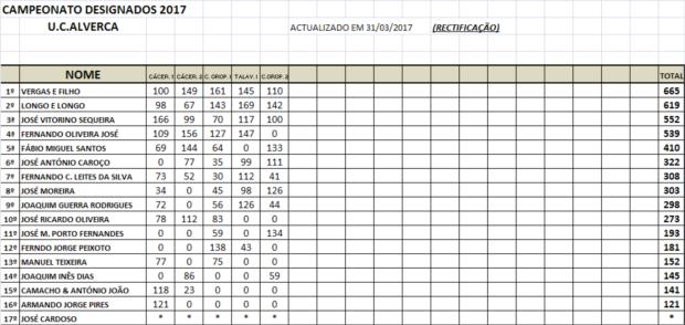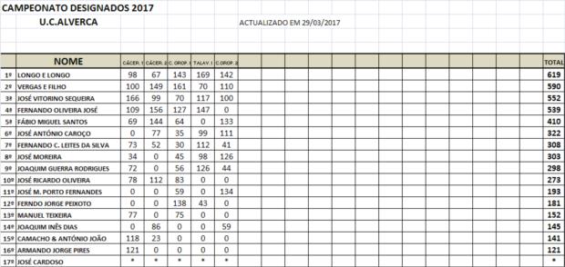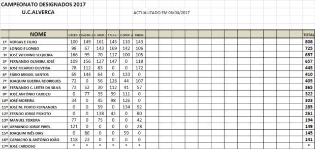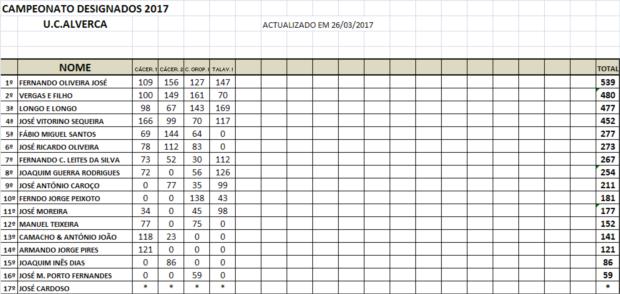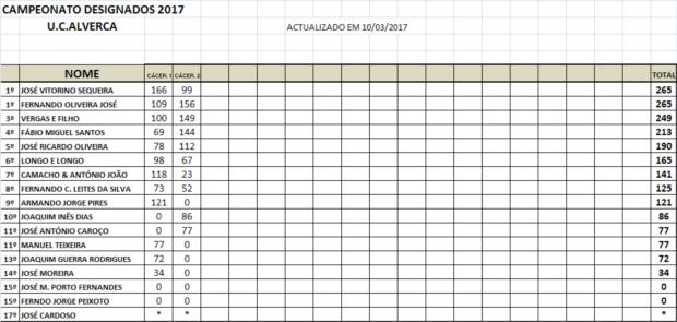 | CAMPEONATO DESIGNADOS 2017 - APÓS CALZADA OROPESA II - RECTIFICAÇÃO | 31/03/2017 |