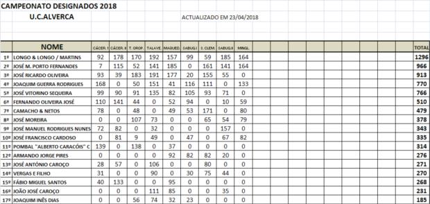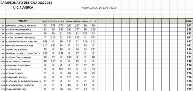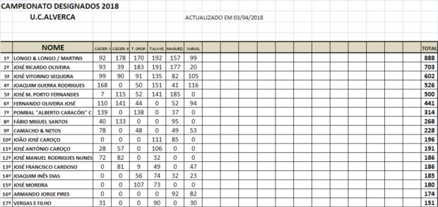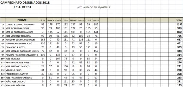 | CAMPEONATO DESIGNADOS - UCA 2018 - APÓS SABUGAL I | 03/04/2018 |