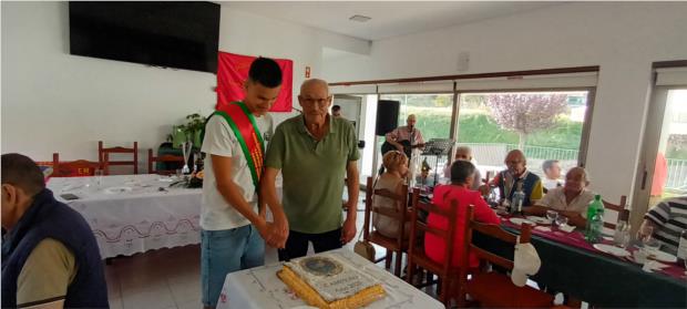 Distribuição de prémios 2023 - "O Campeão António Costa" corta o bolo de campeão ao som dos do cântico habitual dos parabens animado pelo columbófilo Augusto Leite.