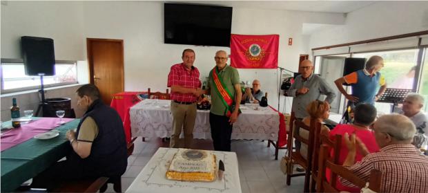 Distribuição de Prémios 2021. O amigo e columbófilo da coletividade Sr. Rufino Silva ladeado à sua direita pelo Augusto Marins Leite, dois veteranos da columbofilia.