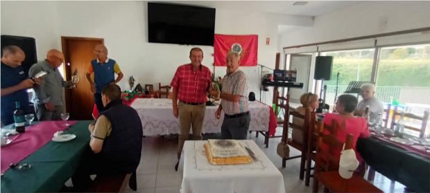 2012- distribuição de prémios - o Campeão Armando Santos, tem a honra de cortar o BOLO de CAMPEÃO, "UM POUCO NERVOSO POIS NÃO ESTÁ HABITUADO A ESTAS LIDES NESTA COLETIVIDADE. BEM HAJA. PARABÉNS.