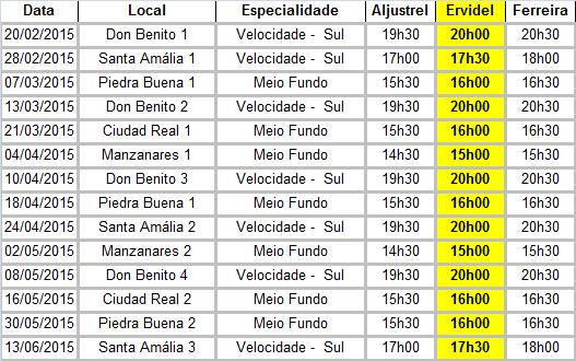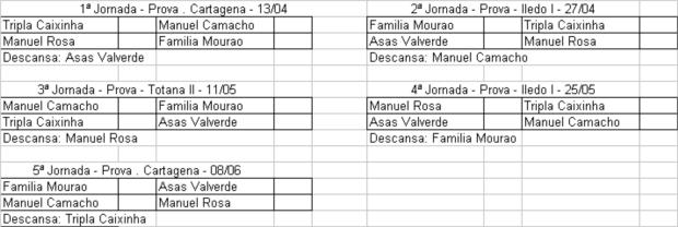 Constituição das equipas para as primeiras 4 provas de fundo: Mahora I - dia 24/03/2011 - Carlos Alexandre Mourão - Asas de Valverde Requena I - dia 07/04/2011 - Tatiana Neves - Manuel Caixinha Alcaniz I - dia 21/04/2011 - Manuel Rosa - Jose da Luz Requena II - dia 05/05/2011 - Duarte Avô - Manuel Camacho