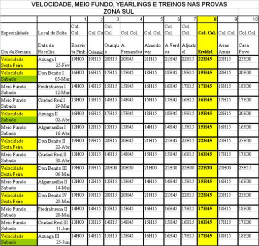 | Mapa de recolha Velocidade, Meio-fundo e Yearlings | 01/02/2011 |