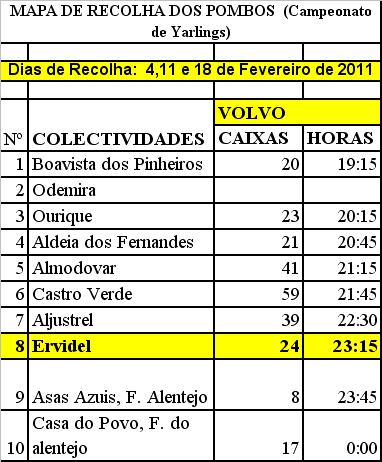 A Sociedade Columbófila Estrela Alentejana - Ervidel, deseja aos seus associados e a todos os columbófilos em geral um ANO 2011, repleto de êxitos pessoais e desportivos. Deseja também que a AMIZADE, o RESPEITO e a SOLIDARIEDADE prevaleçam para além da COMPETIÇÃO.