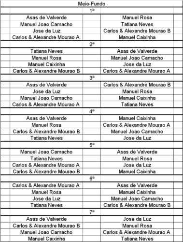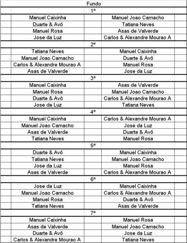 Meias-Finais Asas de Valverde 2º- Manuel Rosa 3º Carlos & Alexandre Mourão 5º - Duarte & Avô 1º