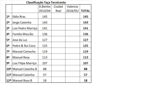 | Clssificação Taça Tecniconta após 1ª prova | 24/04/2018 |