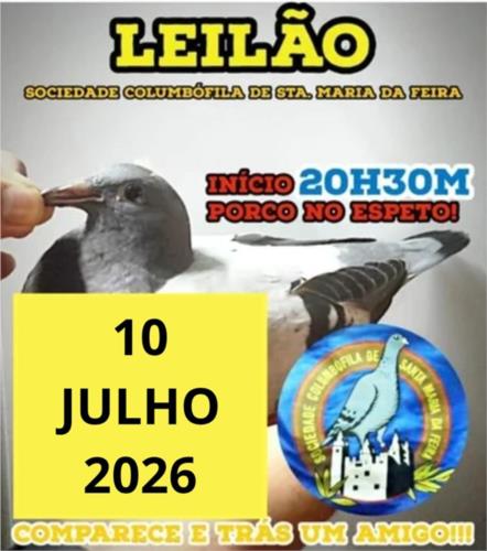 GRANDIOSO LEILÃO SOCIEDADE COLUMBOFILA DA FEIRA 07 DE AGOSTO DE 2021 VENHA CONVIVER E REFORÇAR A SUA COLÓNIA A PARTIR DAS 15 HORAS COMPARECE E TRAGA UM AMIGO |