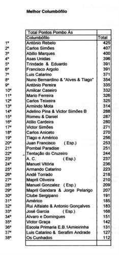 | Classificação Melhor Columbófilo DERBY | 19/07/2009 |