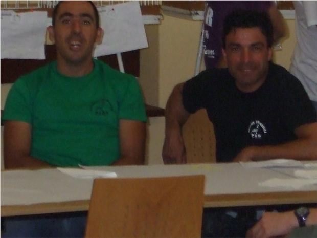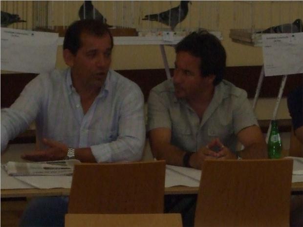 O columbófilo Bento Moita a pedir indicações ao António J. Lampreia. olhem só o olhar matreiro do Columbófilo Rui Moita!