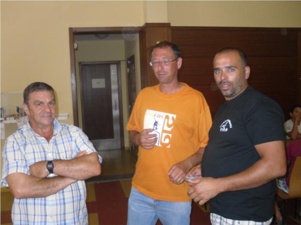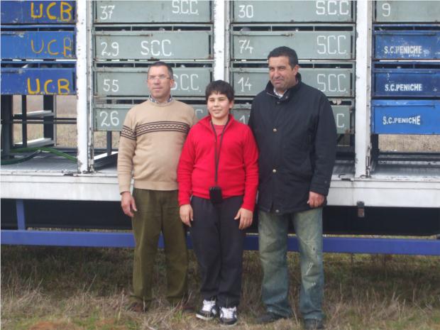 O Columbófilo Hugo Travessa na companhia dos Columbófilos Bruno Helena e Domingos Sousa.