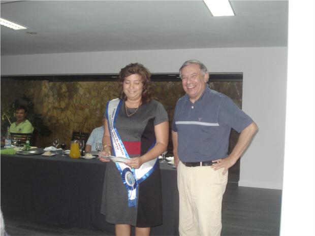 FILOMENA COELHO a receber das mãos do Presidente da Camara Municipal de Montemor-o-Velho Dr. Luis Leal a Faixa de Campeã Geral da edição de 2011 Pombal Comunitário de Arazede.