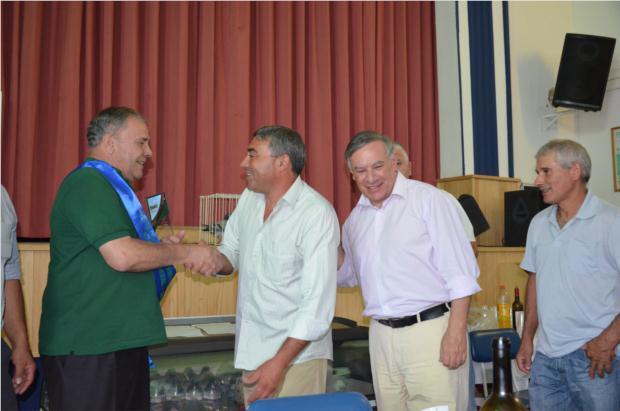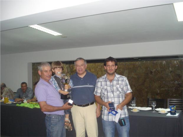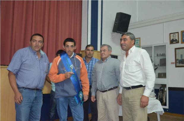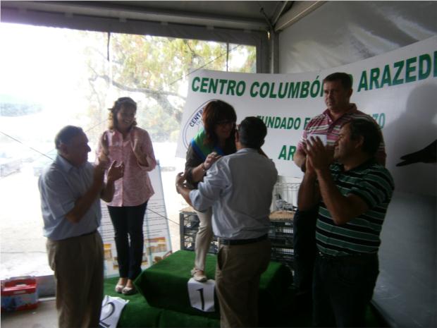José Veríssimo Presidente do Centro Columbófilo Arazedense entregando os prémios a HERNÂNI & MOISÉS, Campeões Gerais da edição de 2013 Pombal Comunitário de Arazede.
